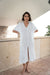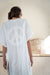 This minimal kaftan is crafted from handwoven linen with a raw edge plunging neckline and front split.