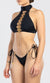 Our model is wearing a bikini top in size S and bikini bottoms in size XS. She is 169 cm tall, measuring 84cm bust, 60cm waist and 90cm hips with a B cup.