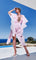 The high-waisted pants offer a breezy silhouette, ensuring ease of movement and a touch of allure. This versatile design is perfect for layering over your favorite swimwear or styling up for a chic beachside lunch. The pastel pink hue adds a romantic touch, making this set ideal for any sunny destination or summer event.