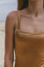 A deep V neck and low back will flatter your figure all over. Sensual and elegant.