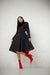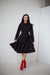 RainSisters | Black Fitted Coat with Pleated Skirt and Strawberry Print 'Wild Strawberry'