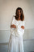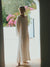 The Harmony dress is a maxi length elegant head turner. Graceful drapery, dropped waist and gathered balloon sleeves create a dramatic yet romantic silhouette. An exaggerated cut out at the back ads allure in the design.
