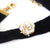 We love giving classic elements a modern makeover for the new season. This choker is finished with a golden porcelain rose and velvet ribbon with a gold-plated extension chain. The rose is hand-painted with gold lustre and decorated with five small sparkling Cubic Zirconia stones. The choker perfectly compliments an off-the-shoulder top or stunning evening dress. Red Velvet and Navy Velvet options are also available.