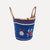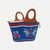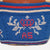 Materials: knitted piece in 100% cotton and embroidered in the same material; Background color - electric blue, red and cream; Recycled canvas inner bag 70% cotton/30% viscose; Leather label and camel hand strap.
