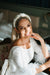 The delicate veil is adorned with dazzling crystals. Veil is hugging your face neatly and sits above the eyes for an elegant effect.