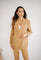 Women's camel blazer featuring a double-breasted front with button fastening and long sleeves. Designed with front flap pockets and a single vent at the back, it’s fully lined for added comfort and shape. The camel shade gives it a soft, stylish appearance, making it suitable for many occasions.