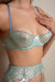 Fedra est un soutien gorge en dentelle brillante. Cet ensemble, a des finitions asymétriques et il est inspiré par une fleur.