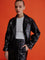 The Callie Jacket is made from faux leather with a croco effect. This black design features an oversized fit, dropped shoulder seams and flap pockets.