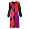 Turn heads in our Colorful & Black Abstract Design Patchwork Knit Dress. This slim-fit beauty hugs in all the right places thanks to its soft viscose fabric, while the shimmering silvery knit sleeves bring just the right amount of sparkle.