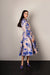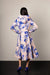 This woman's coat has a lovely beige color and a pretty blue flowers print. It's got a classic style that fits and flares, making you look graceful and accentuating your waistline. Step into feminine beauty with the 'Cornflower Blue' coat, where the simplicity of beige combines with delicate blue blooms for a look that embraces your femininity with charm.