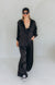 These wide-leg black silky trousers offer a stylish fit with a comfortable elasticated waist and flowing fabric. Featuring convenient pockets, they combine elegance and practicality. Perfect for dressing up or down, pair them with a matching black satin shirt for women, available separately, for a polished, complete look.