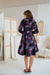 The 'Hortense' coat is a chic and playful masterpiece with its fit and flare design. The fitted top elegantly transitions into a full skirt, creating a flattering silhouette. The vibrant purple and pink flower print adds a burst of color, making this coat a stylish and lively choice for any occasion.