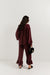 Loose-fitting trousers with pockets and a fancy frill in a beautiful top colour of juicy burgundy are the perfect choice for women who appreciate comfort and style. Made from high quality fabric, they sit perfectly on the silhouette and work beautifully in motion. The AMARONE trousers have a higher rise finished with an elastic waistband, allowing for a better fit to any figure and will work well for both short and tall people.