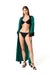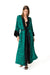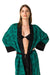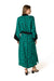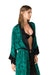 Zümrüt yeşil üzerine siyah çiçek desenli kumaş. Kollarda ve yakada yumuşak jakarlı siyah kumaş detayı.