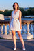 Stand out in our stunning mini dress made in high quality sequin fabric with Samy- flared silhouette , flirty cut out details and Bold flower accent on the V – cut neckline . The side cut out details on the bodice and the skirt features a hidden elastic at the waist , ensuring both comfort and style . The dress is also easy to wear with the invisible side zipper and to avoid the possible skin irritation from the payette fabric we carefully hand-beaded under-arms part and also around the neck . Feel like the centre of attention in our mini dress.