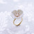 The beautiful plum blossom, who never fears frost and snow, bravely flowers in the coldest seasons, awakening spring and bringing hope. The pure and delicate petals deserve your extra love and care. Ring is made of porcelain flower; gold-plated silver ring and a small freshwater pearl.