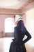 Add to your wardrobe this chic black coat, adorned with playful white polka dots that brings a fun twist to a classic look. The coat has a fitted bodice that highlights your shape, while the flared A-line skirt creates a graceful, flowing movement. Inside, you will find a luxurious black Italian satin lining, offering a smooth feel against your skin, and the detachable, adjustable hood provides coverage for any weather. This coat has a timeless elegance and a modern twist, perfect for any occasion, ensuring you stand out in style.