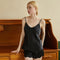 Soft Strokes Silk | Black Camisole and Scalloped Shorts Pyjamas Set