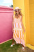 The Pamela Dress is effortless, elevated and endlessly chic, all wrapped up in one. Crafted from Viscose Fugette, with a fixed bra friendly strap, a throw-on-and-go silhouette and a side split detail. Available in our 90s inspired teal Luna Stripe or orange Soleil Stripe print.