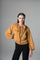 Make a bold statement with this vibrant mustard blouse, adorned with an eye-catching ruffle neckline and delicate tie detail. The long puff sleeves add a touch of drama, while the tailored fit ensures a flattering silhouette.