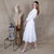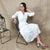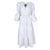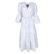 This romantic white cotton dress is the definition of effortless femininity. Featuring delicate embroidery, a flattering V-neck, 3/4 sleeves, a fitted waist, and a flared mid-length silhouette—it’s made to move with you.