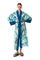 Beden mavi desenli. Kollar, yaka, kemer, cep ve biye detayları petrol mavi renk.