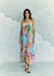 The Spaghetti Strap Dress features a relaxed, silhouette with delicate spaghetti straps and a softly gathered neckline. The dress is adorned with a scenic watercolour-style print—capturing charming pastel buildings, sweeping coastline hues, and painterly brush textures in soothing blues, greens, pinks, and corals. Crafted from lightweight, soft, and flowy fabric with precise, high-end finishing, it drapes effortlessly and ensures all-day comfort.