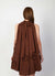 Fine linen silhouette stitched with open thread boho floral handcrafted embroidery at the hem. Funnel shaped halter neck design to flatter your neckline. Relaxed fit, combines playful charm with sophistication for versatile and chic look. Halter neck dress made in linen base with floral applique in tulle embellishments