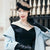 Flowers are even more attractive with their leaves. We love seeing them together at the start of every season. Every porcelain camellia charm is presented on top of a black embroidered fabric,  which has golden filigree on the back side. Necklace is made of porcelain flower charms, gold-plated metal and embroidered fabric.