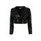 Step into the spotlight with our sequined cropped black blazer, a dazzling addition to your wardrobe. This blazer is designed to make a statement with its shimmering sequins that catch the light at every angle. The cropped silhouette adds a touch of chic elegance, making it perfect for special occasions, parties, or adding some glitz to your daily ensemble.