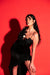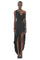 The dress is adorned with decorative black flowers, which not only enhance its charm but also create a striking contrast against the beige silk. This unique blend of colours and the play between the maxi and shorter hemline make this dress perfect for special occasions, nights out, or any event where you want to make a statement.