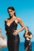 Make a dazzling entrance at your next beach party with our glamorous black sequins midi dress, designed to steal the spotlight with its radiant allure. Crafted to perfection, this stunning dress features a mesmerizing volant neckline that adds a touch of elegance and sophistication to your look.