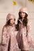 Wrap your little one in cozy comfort with our "Pink Blush" coat. It's made from a softshell material that feels gentle on her skin. The pretty beige-pink color with white flower leaf print adds a cute touch. This coat keeps her dry on rainy days and has easy-to-use push buttons at the front for a classic look. Inside, there's a smooth satin lining for extra coziness. It's perfect for keeping her warm and stylish wherever she goes!