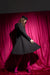 RainSisters | Fitted Coat with Full Circle Skirt in Black with Fuchsia Pink Lining 'Pink Ruby'