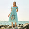 Off-the-shoulder dress is decorated with flowers at the skirt and ruffles details on the bodice . Fit And Flare A -line silhouette with shoulder ties and gathers on the waistline .Printed Flowers are decorated with hand painted small details on bodice and skirt .