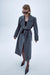 Nazlı Ceren's anthracite-tone Isha Coat has a slightly oversized silhouette and features an asymmetric hem on one side for a modern touch. It combines comfort and style with a stylish padded shoulder.