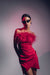 This eye-catching, strapless mini-dress comes in black, white and bright pink. Short and strapless, it screams party time! The dazzling feathers on the top make the Chablis dress a unique choice for those special evenings out.