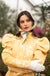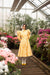 This bright yellow trench coat is water-resistant and has a soft white flower pattern and a soft pink satin lining. It is a single-breasted coat with a fitted top and a flared A-line skirt, giving it a classic shape. The vintage-style balloon sleeves add a playful touch, moving gracefully as you do, for a charming look.