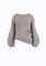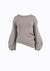 Knitted sweater with puffed sleeves, asymmetric hem, and side zipper detail. Cozy and stylish for cooler days.