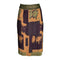 A very chic pleated knee-length with the sparkly gold waistband. The abstract digital prints and the warm colors emphasize the sparkly gold waistband.
