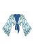 Önde bağlanarak ya da belde anvelop yapıp arkada bağlanarak giyilebilir. Önü ve kolları mavi desenli. Sırt ve biye detayları petrol mavi renk.