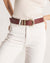 Erini belt - a stunningly simple accessory that boasts a wide silhouette and a shining ornate buckle. Handcrafted from premium textured grain leather, this elegant belt is both stylish and practical, perfect for pairing with crisp white shirts or your favorite jeans. Its width ensures a seamless fit through any belt loop, making it a versatile addition to your collection. Elevate your fashion game with this timeless and minimalist accessory.