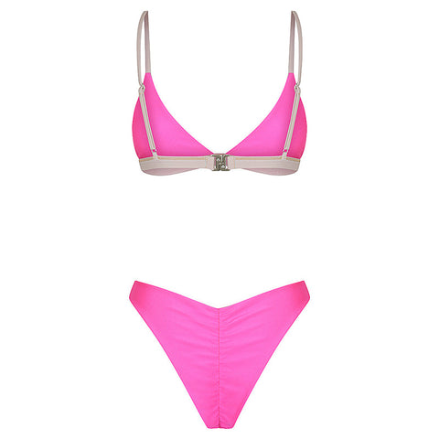 Reversible Flamingo | Tan 85% polyester 15% spandex Cheeky Cut Ruched Adjustable Triangle Cinched Seamless Designed in Australia Care: Hand wash cold, line dry in shade only