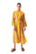 Beden sarı desenli. Kollar, yaka, kemer, cep ve biye detayları sarı renk.