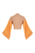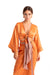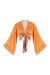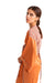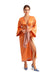 Önde bağlanarak ya da belde anvelop yapıp arkada bağlanarak giyilebilir. Önü ve kolları parlak kumaşlı pastel turuncu renkte. Sırt ve biye detayları desenli.
