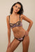 The Lexi brief belongs to the Lexi set and has a decorative piece of shiny pink leather. It is made from transparent black tulle.
