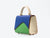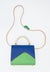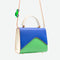 Mała torebka na ramię wykonana ze skóry w kolorze zielonym, granatowym i złamanej bieli, z abstrakcyjnym szlifem górskim na klapie nadającym jej nowoczesny, artystyczny charakter.