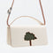 Średniej wielkości torba na ramię wykonana z najwyższej jakości hiszpańskiej skóry bydlęcej o gładkim wykończeniu. Skóra charakteryzuje się bogatą paletą barw: bordową, złamaną bielą i szarością, co nadaje jej niepowtarzalny i wyrafinowany wygląd. Klapa zdobiona jest charakterystycznym, drzewnym szlifem, który dodaje jej subtelnego, a zarazem artystycznego charakteru.