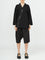 Czarne, swobodne kimono w stylu kopertowym z wstawką z tafty przy dekolcie