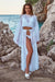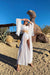 To piękne nakrycie plażowe od Antoninias można nosić na wiele sposobów. Bon voyage. Góra nakrycia ma dekolt w łódkę i długie, szerokie rękawy. Spódnica jest rozpinana z przodu i ma ozdobną złotą klamrę, idealną na każdy strój kąpielowy. Dwuczęściowe nakrycie plażowe ma drapowane detale, dzięki czemu jest wyjątkowo zwiewne i eleganckie.